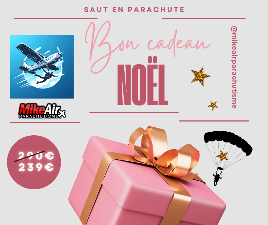 Vous recherchez une idée de cadeau ? Offrez un saut en parachute en tandem. Peu importe l’occasion (anniversaire, mariage,Noël, Saint-Valentin, enterrement de vie de jeune fille/garçon, mariage, départ à la retraite, examen), le saut en parachute est le cadeau inoubliable aux sensations incomparables ! Vous êtes sûr(e) de faire plaisir à coup sûr.